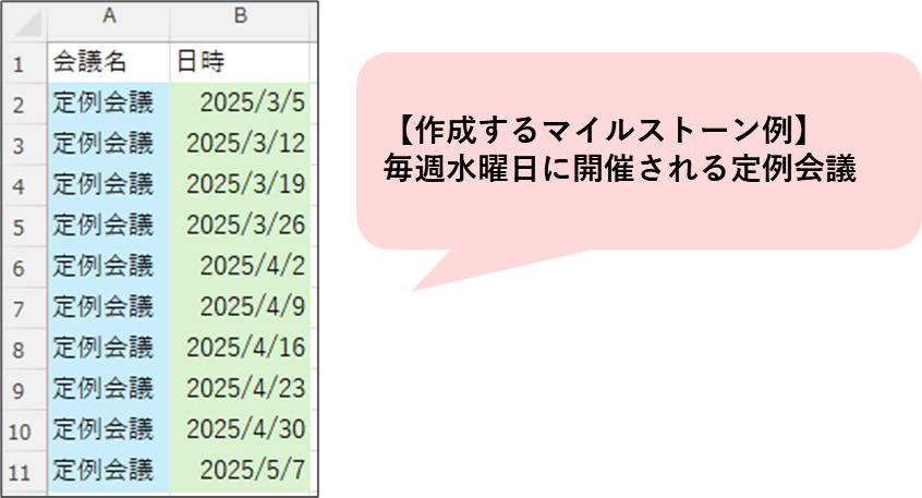 ①データからマイルストーンを一括で作成