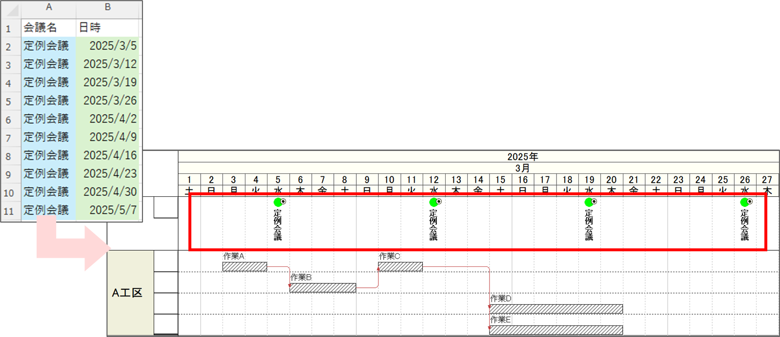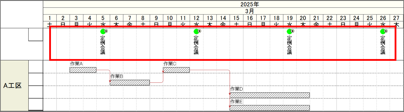 4.保存後「WBSエディター」のウィンドウを閉じると、工程表にマイルストーンが反映されます。