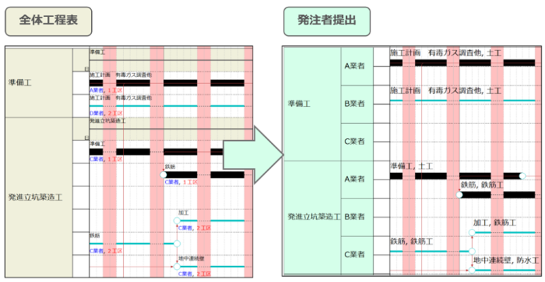 1.「現場確認用」と「提出用」で表示形式が異なるため、提出のたびに工程表を作り直すのが大変!