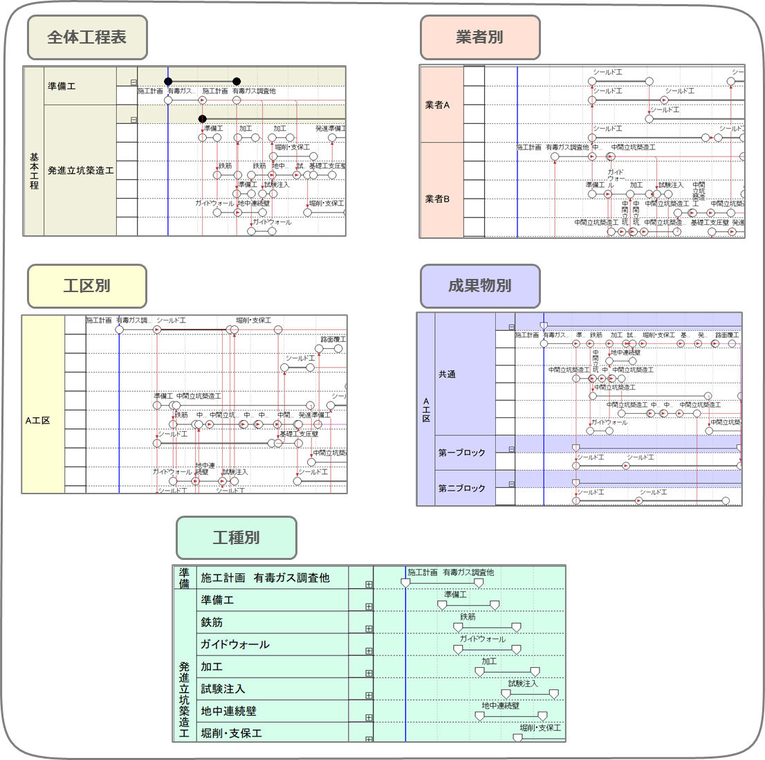 工程'sの「ビュー機能(マルチビュー)」を活用することで、現場で日々行われる工程管理を効率化することができます。