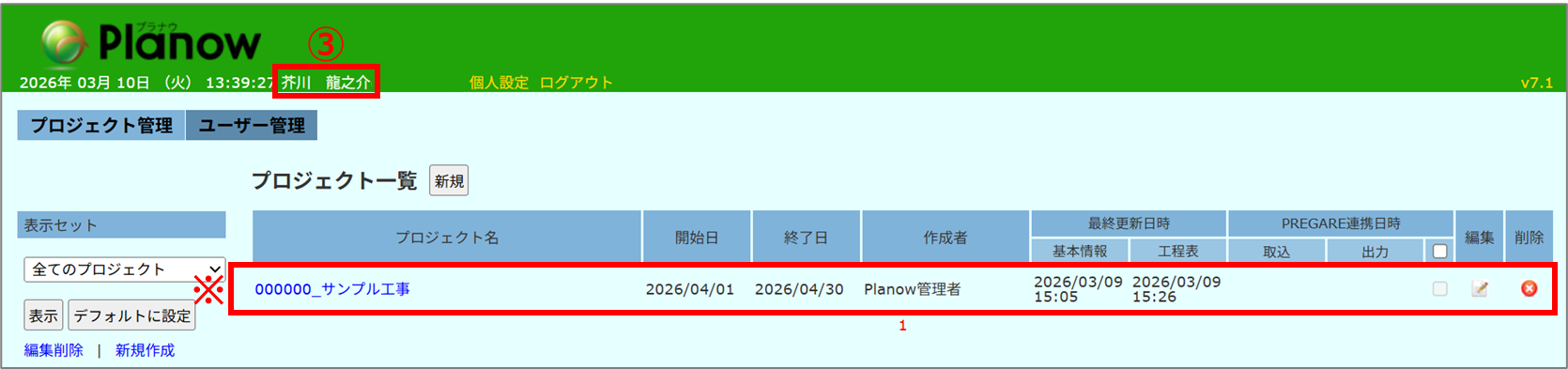 ※[プロジェクト一覧]に表示されるプロジェクトは、登録時に記載いただいた現場プロジェクトです